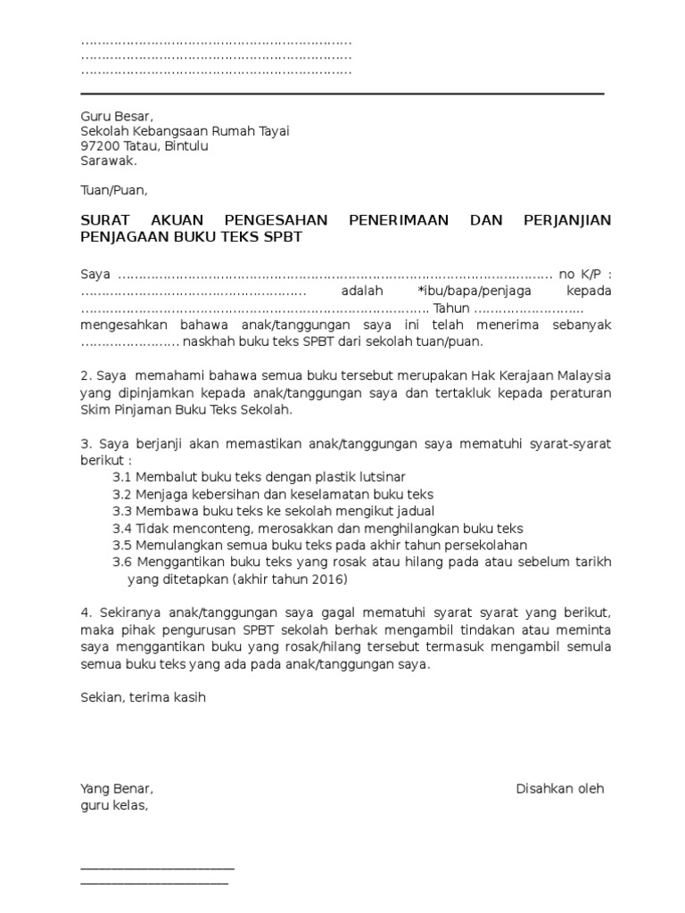 Surat Akuan Penerimaan Buku Teks Pdf