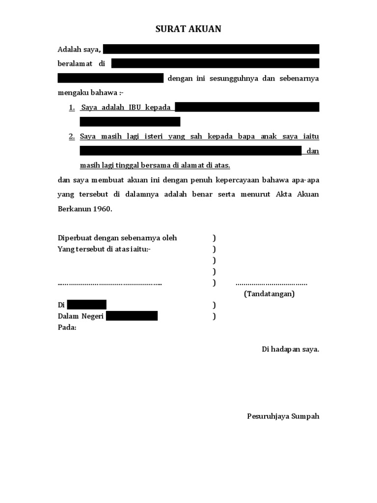Surat Akuan Sumpah Isteri Dan Ibu Yg Sah Pdf