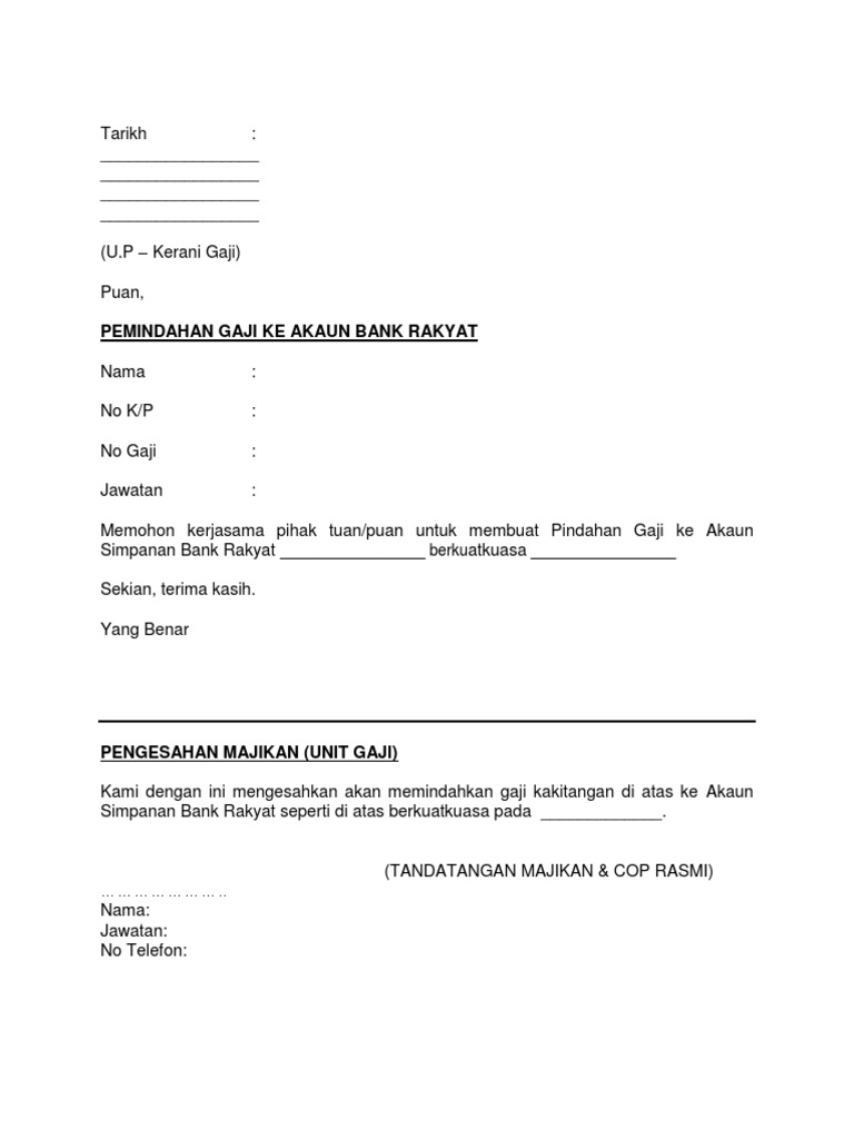 Contoh surat pengesahan majikan untuk bank rakyat download. 8 Penyata Pinjaman Lama Wajib untuk menyelesaikan pinjaman yang telah disenarai hitam. Nombor cek xxxxxx amaun rm xxx xxx xx tahun serahan 20xx no.